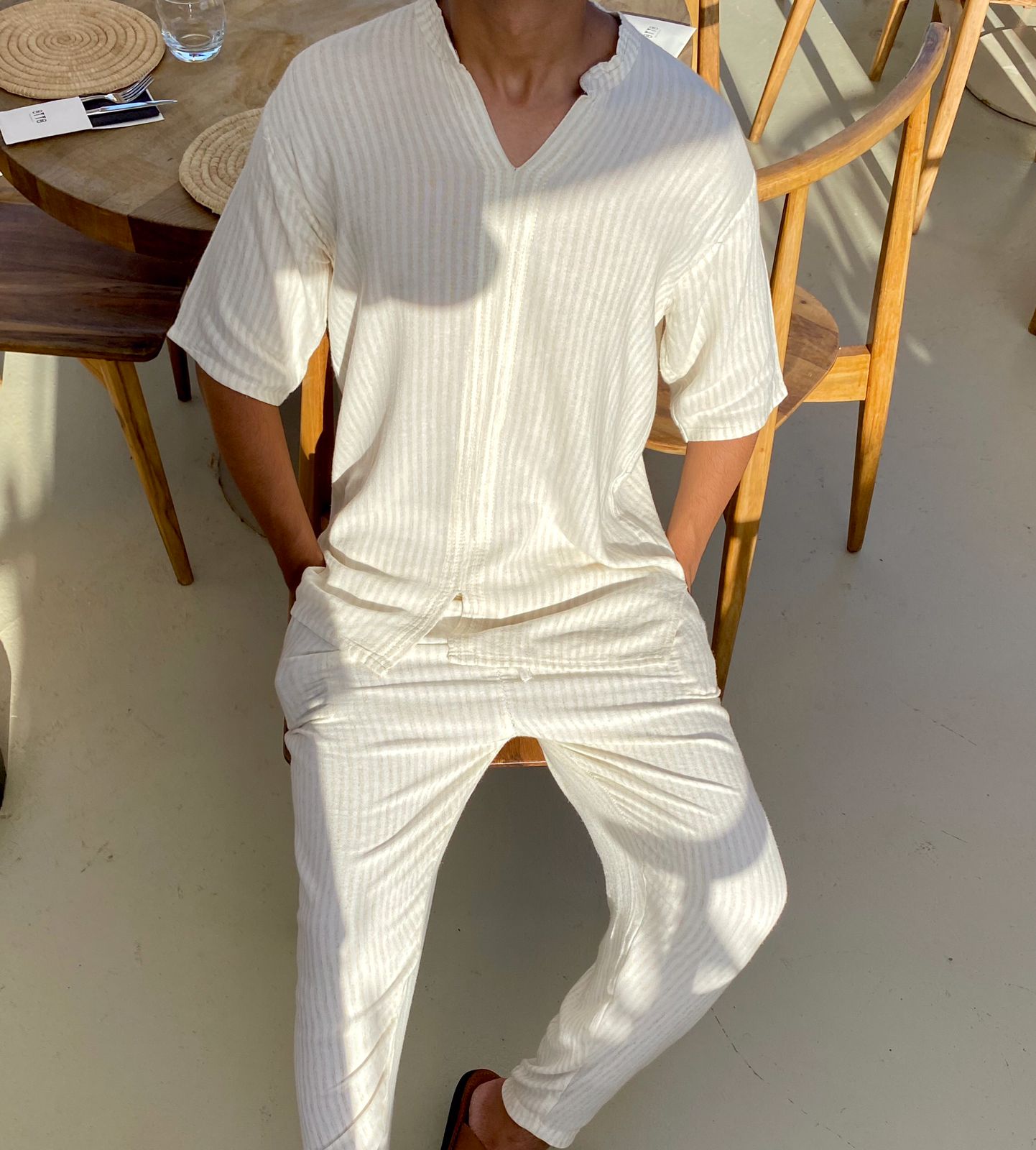 Un ensemble indispensable pour ce printemps et cet été ! Découvrez l'un de nos best-sellers : LIFE LELIN|Ensemble en lin élégant pour homme, spécialement conçu pour un maximum de confort et de sophistication pendant les mois les plus chauds. Cet ensemble est parfait pour les hommes à la recherche d'une tenue légère et élégante.